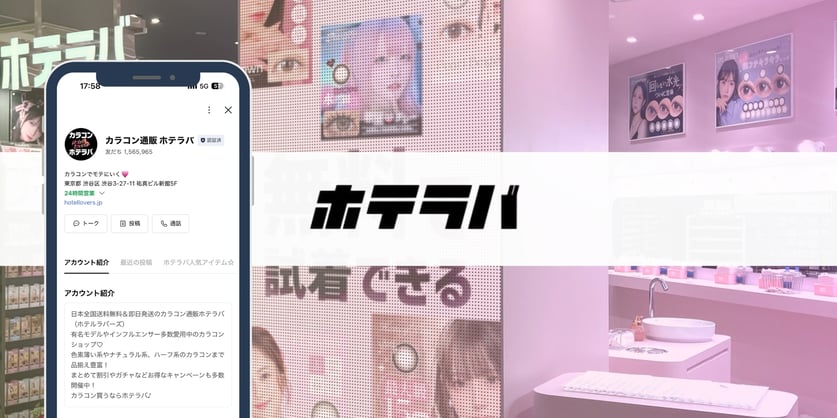 トレンディーなデザイン性と手頃な価格で若者に大変人気のある日本のカラーコンタクト通販ブランド「HOTEL LOVERS(ホテルラバーズ/ホテラバ)」。今回は、担当者の長谷部絵玲菜様(以下敬称略)に、弊社が開発したLINE拡張機能ツール「MAAC」を使用し、どのようなマーケティング戦略を考え、そしてどのような施策を実施されているのか、詳しくお話を伺いました。